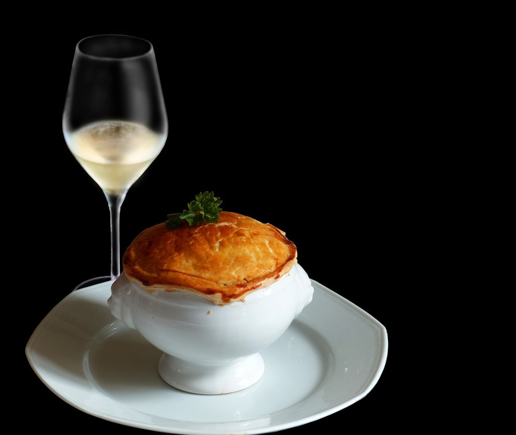 Beat the egg yolk. Using a brush, put a little yellow on the top edge of the casseroles. Place the puff pastry rounds on each side gently press the sides to make the dough adhere, then brush with beaten yellow.